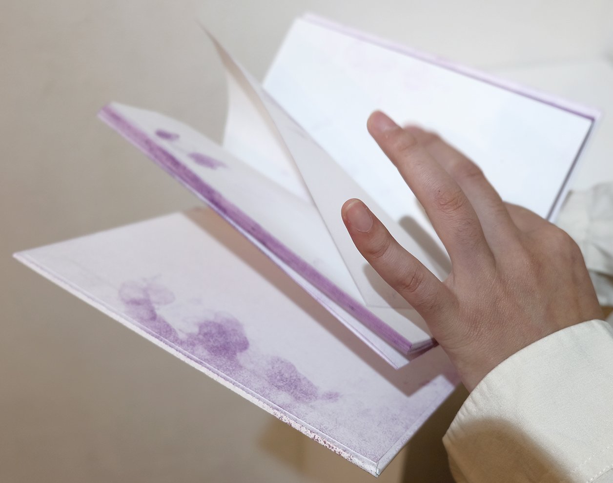 しかし、指紋も時の流れとともにやがて薄れ、再び白い本へと戻っていく。